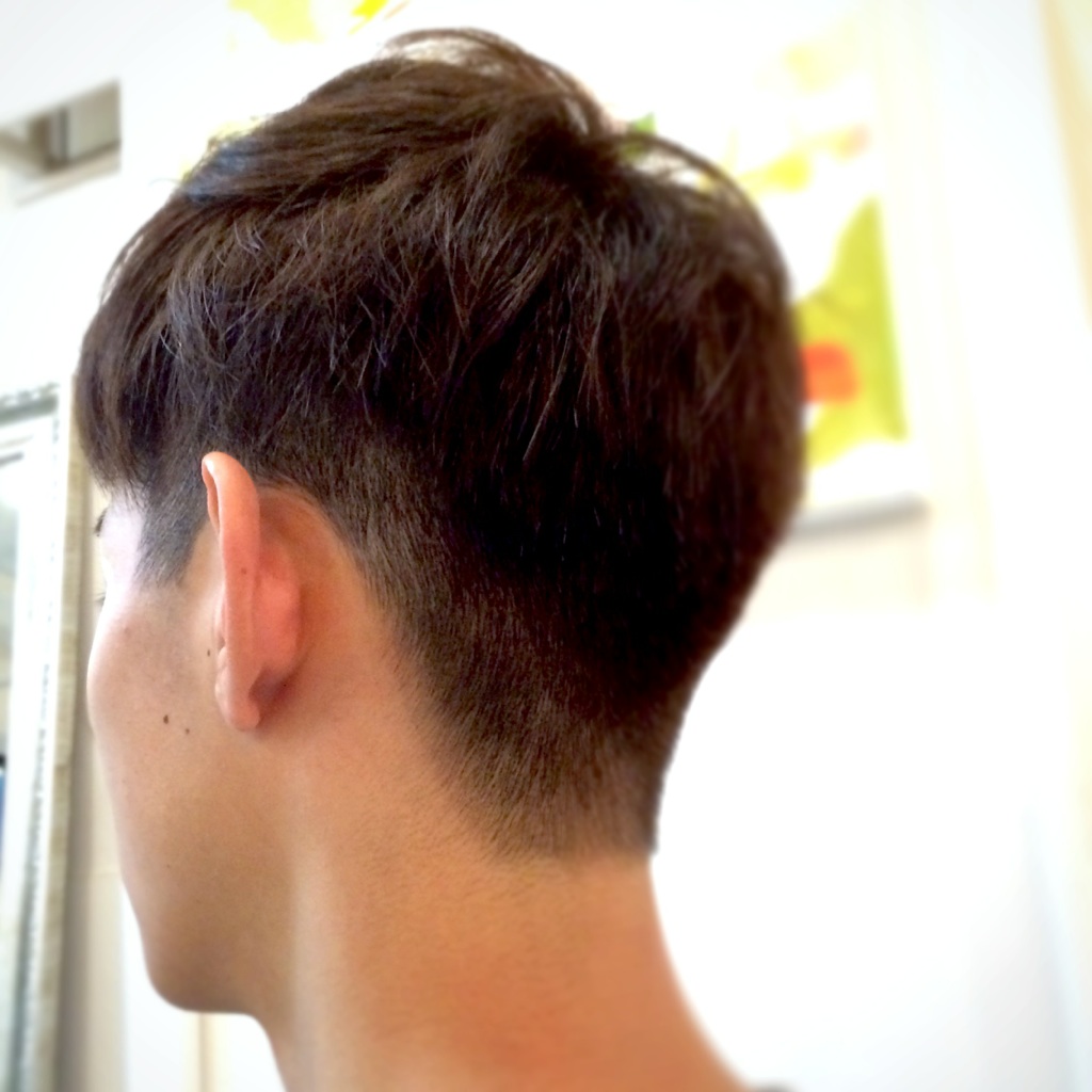 サイドに2ブロックを入れて、内側とバックは刈り上げています